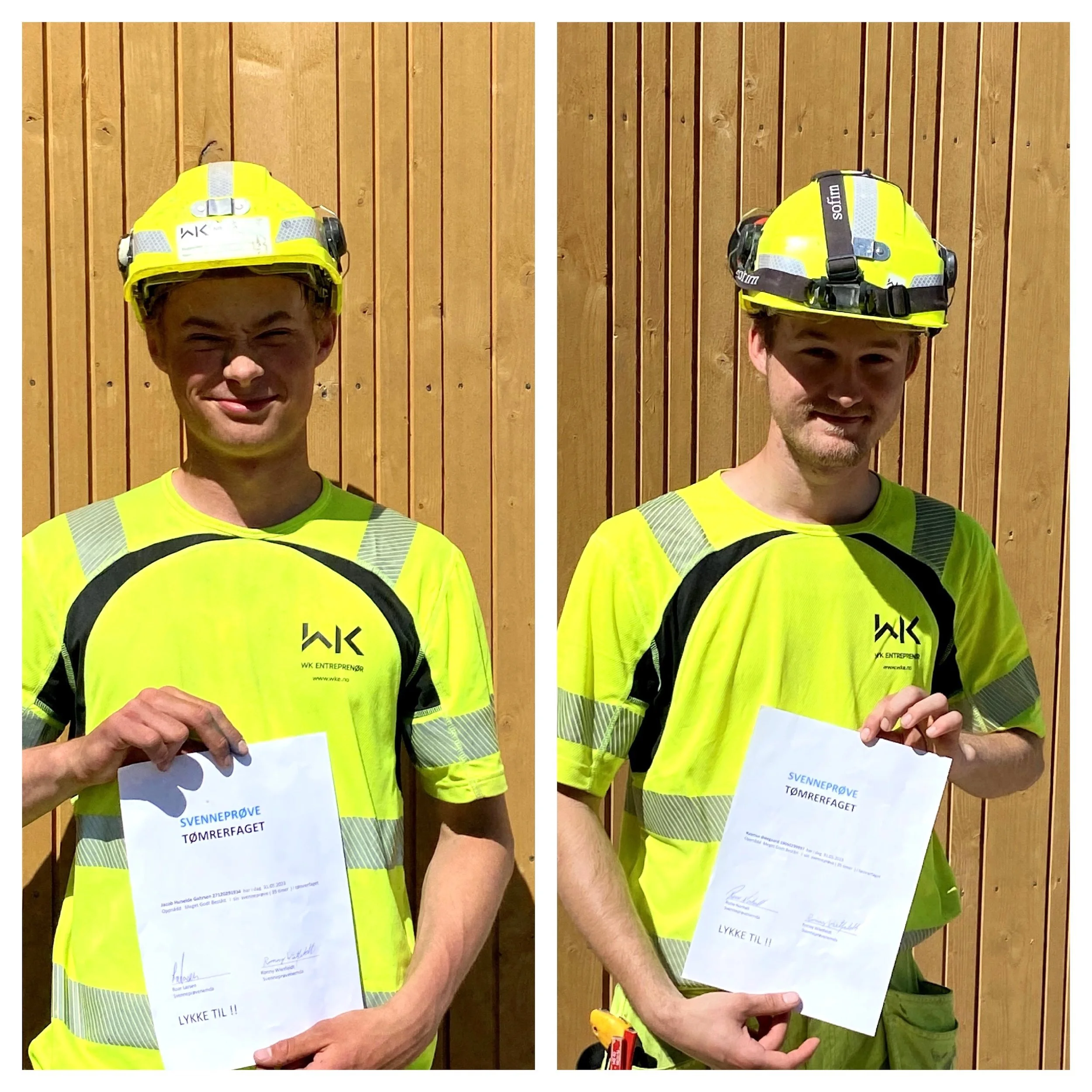 Rasmus og Jacob har fulgt hverandre som TAF lærlinger i fire år. Dette er et utdanningsvalg som sikrer de både fagbrev og studiekompetanse med fordypning i fysikk og matematikk. De har tilbrakt hele lærlingetiden i WK, noe som betyr mange ulike prosjekter: Ishallen Maier Arena, boligprosjekt på Teie, rehabilitering av kontorbygg i Statens park, oppføring av Hogsnes Helsehus og nå til slutt Klokkerjordet skole i Sande.