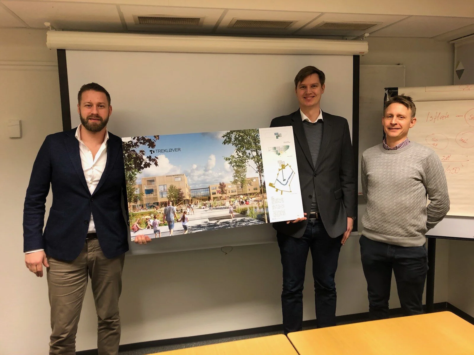Martin Hagen, prosjektleder Holmestrand kommune, Erlend Wegger, daglig leder WK Entreprenør og Markus Amland, avdelingsleder WK E
