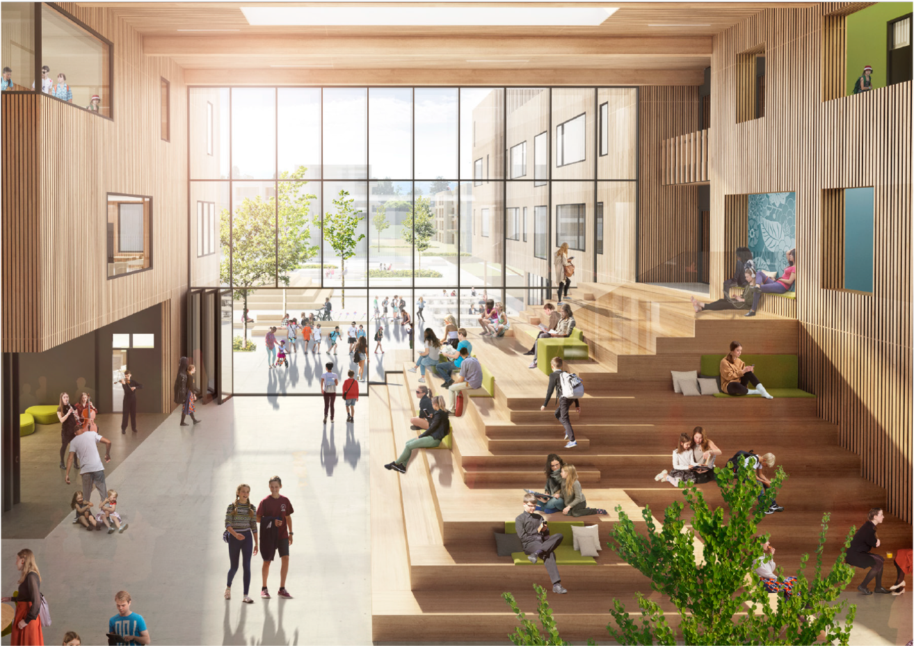Slik skal sentrumsskolen i Sande se ut.