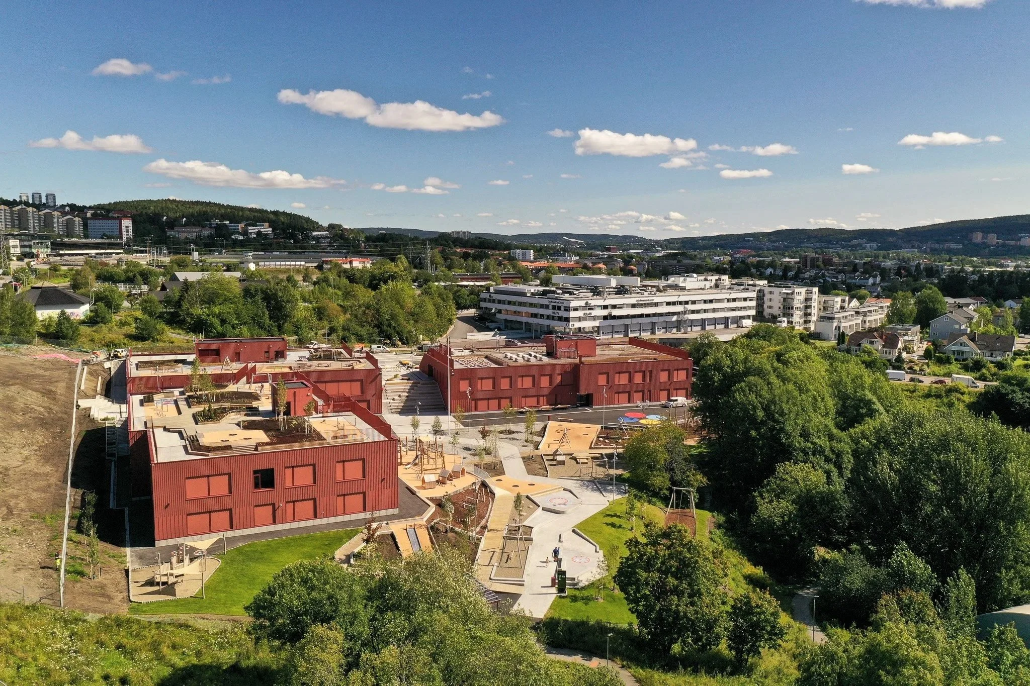 Fysisk oppstart på byggeplass var sommeren 2021, og bygget stod ferdig til skolestart i august 2024. Se denne saken hvis du vil få med det arkitektens betraktninger og glimt fra skoleåpningen.